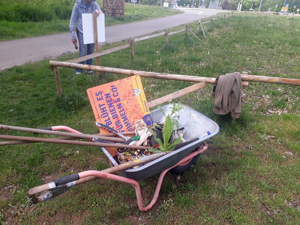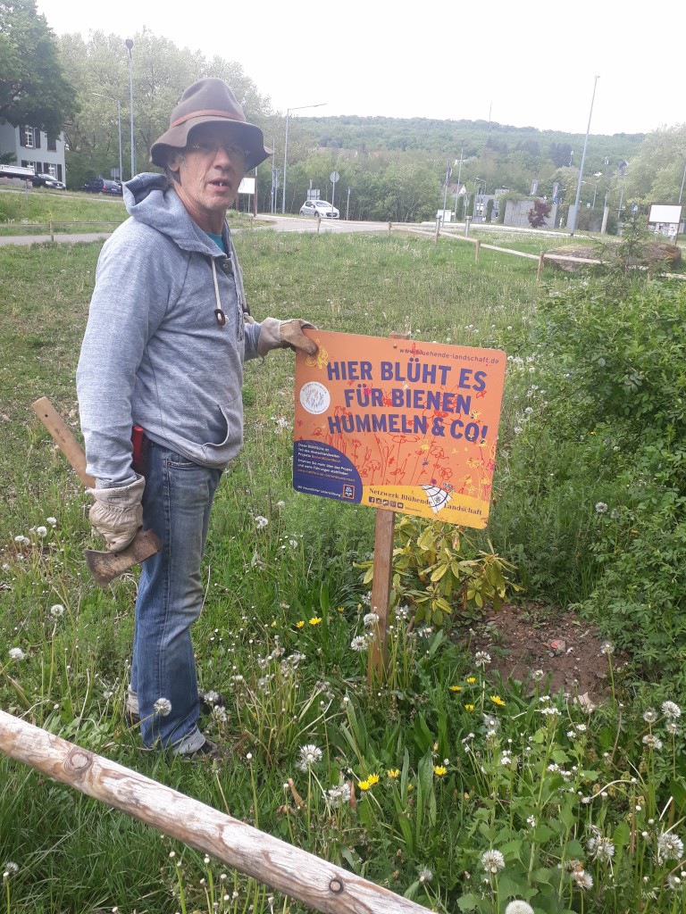 Anfang Mai lies es sich trotz Corona-Krise unser Garten-Experte Georg nicht nehmen, die Blühwiese für Insekten im Wagwiesental zu pflegen. Dabei reparierte er den an einer Stelle zerbrochenen Zaun und stellte das vom „Insktenhotel“ abgerissene Hinweisschild in der Wiese auf. Frische Blumenzwiebeln wurden gepflanzt und an den etwas kahlen Stellen hat Georg nachgesäht.