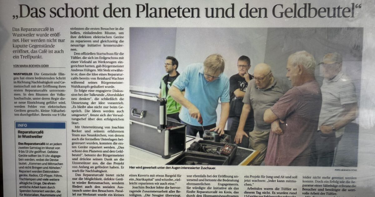 Herzlichen Glückwunsch zur Eröffnung nach Illingen zum Reparaturcafé Illingen. Wir durften helfen und freuen uns. Danke an @maria boewen-dörr von Saarbrücker Zeitung